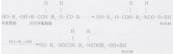 聚氨酯粉末涂料固化成膜的主要化學反應是聚酯樹脂的羥基(— oh)與封閉異氰酸基(— nco)之間的反應,反應式可表示如下: